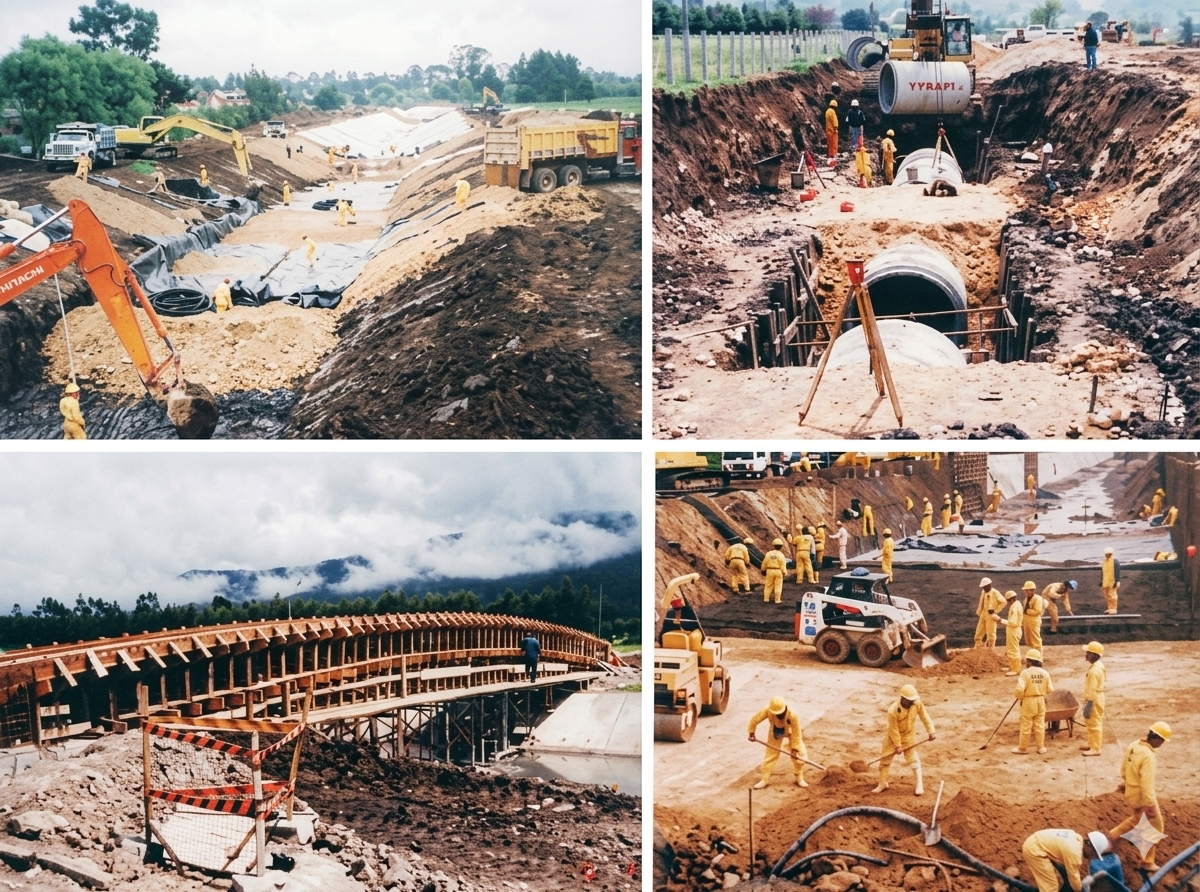Compañía de lngenieria fundada el 4 de mayo de 1989, dedicada a la contratación de todo tipo de proyectos civiles y mineros con enfasis en grandes movimientos de materiales para la mineria industrial, explanaciones, rellenos, pavimentos rigidos y flexibles para apertura y conservación de carreteras; construcción de canales, acueductos, alcantarillados, obras de saneamiento ambiental y construccion vertical. Contamos con equipo propio de maquinaria, transporte y procesamiento de materiales, canteras y plantas de producción de agregados en Bogota, Melgar y Fundación, lo que nos genera solidez, liquidez y garantia de cumplimiento para grandes proyectos civiles y mineros.